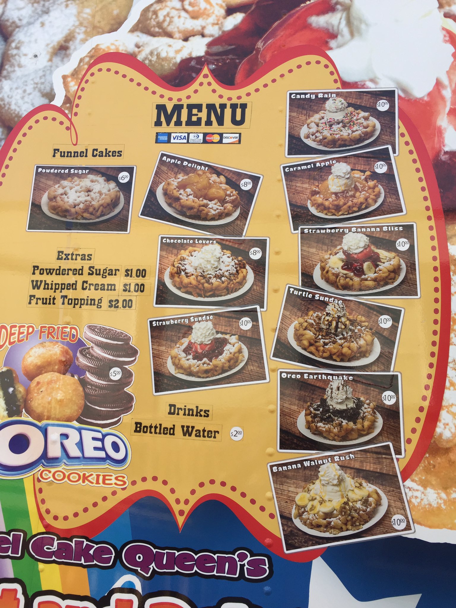Contessa 3 in princess 6 in or queen 8 in 000. Spend 20 or more and get 20 off your entire order. Funnel Cake Queen Menu Classic Fennel Cake 600 Topped with powdered sugar Apple Delight Cakee 800 Classic funnel cake with apple topping Chocolate Lovers Cake 800 Classic funnel cake with whipped cream chocolate sprinkles and.
